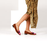 The habbot ‘itaca’ women’s loafer in brown suede leather is designed for smart-casual work or off-duty dressing. With a square toe, contrast pink leather ‘kiltie’ fringe and black metallic accessory, this versatile slip-on flat is comfortable, fun and effortlessly stylish