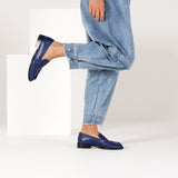 habbot ‘pinetto’ women’s flats embrace a classic loafer silhouette. Constructed from navy blue calf leather and finished with a ruched moccasin style toe, this smart-casual slip-on is perfect for both the workplace and relaxed weekend wear