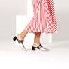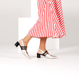habbot ‘diego’ women’s heels in textured silver metallic leather feature a low block heel and three black patent buckle straps that sit securely across the instep. Diego’s elasticated sling-back strap and sleek pointed toe offer a deceivingly generous fit to this fiercely feminine footwear style