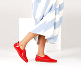 habbot women's ‘tigli' lace-up flats exude effortless style in a bold siren red colourway. Perfect for dressing up or down, this fresh oxford style flat in supple crinkle patent leather features a square chiseled toe and fine leather sole for a fuss free smart-casual look