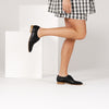 habbot’s classic ‘juno’ in 'nero' black calf leather are our signature women’s Summer flats. These supremely comfortable 'punch hole' perforated lace-up brogues allow for the stretch and breathability you need over the warmer months. Effortlessly stylish for both weekend or office wear