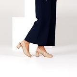habbot ‘brolo’ women’s sling-back heels in camel coloured calf leather are a timeless summer style. With a tapered peep-toe, high topline edge to comfortably enclose the foot, and elasticated sling-back strap, these flattering block heels are perfect for those needing additional width in their shoes