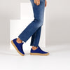 habbot introduces 'berti' to our capsule collection of women's signature Italian made sneakers. With paneled uppers crafted from dark blue suede that has been subtly embellished with glitter, these stylish trainers are finished with blue laces and a substantial gum rubber sole