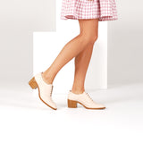 Your perfect go-to shoe, habbot ‘froth’ lace-ups in supple cream coloured Italian calf leather are our classic oxford brogue, complete with a practical mid-height block heel and almond toe. With a timeless, feminine silhouette, this neutral footwear choice is perfect for all occasions