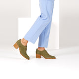 habbot 'pantone' women's heeled brogues are a classic style choice in a new, head turning khaki green colourway. This Italian suede oxford lace-up delivers on style and sophistication while the stacked mid-height block heel offers comfort and all-day wearability