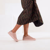 The habbot women's 'wala' sneaker is crafted from soft blush pink calf leather for a contemporary take on the classic lace-up tennis shoe. Perfect for off-duty dressing, wala is finished with a matching glitter heel counter and colour matched rubber sole