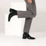 The habbot ‘gavi’ women’s chelsea boot in 'nero' black crinkle finish patent leather is designed for versatility and comfort. This smart-casual ankle boot has a timeless appearance with an almond shaped toe and elastic side panels. Its mid height block heel makes gavi perfect for everyday wear