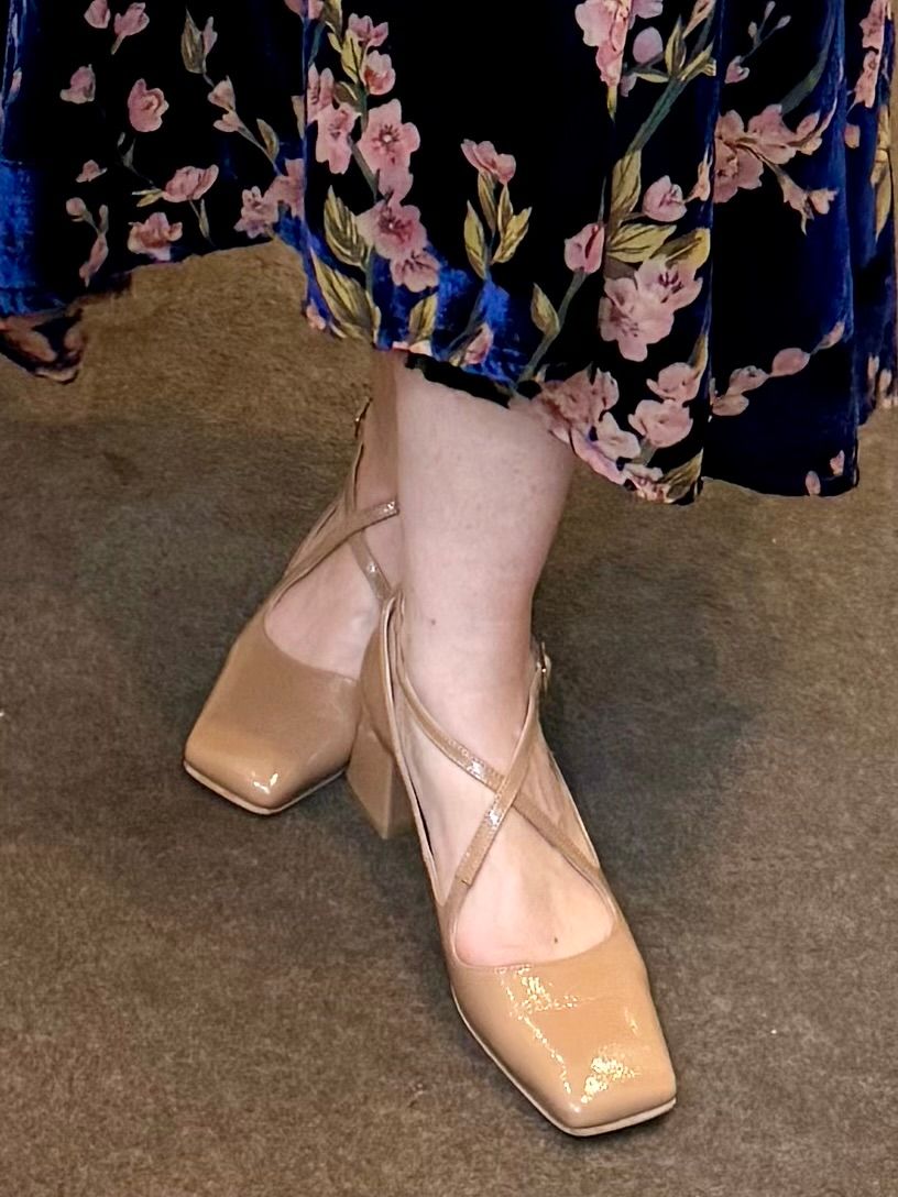 As soon as I slipped into these shoes I knew they would be on high rotation. Stylish and comfortable, the soft leather hugs your feet. I walked miles on the first wear. Practical heel height - I love the cross-cross fitting, the Mocha colourway is so versatile too.